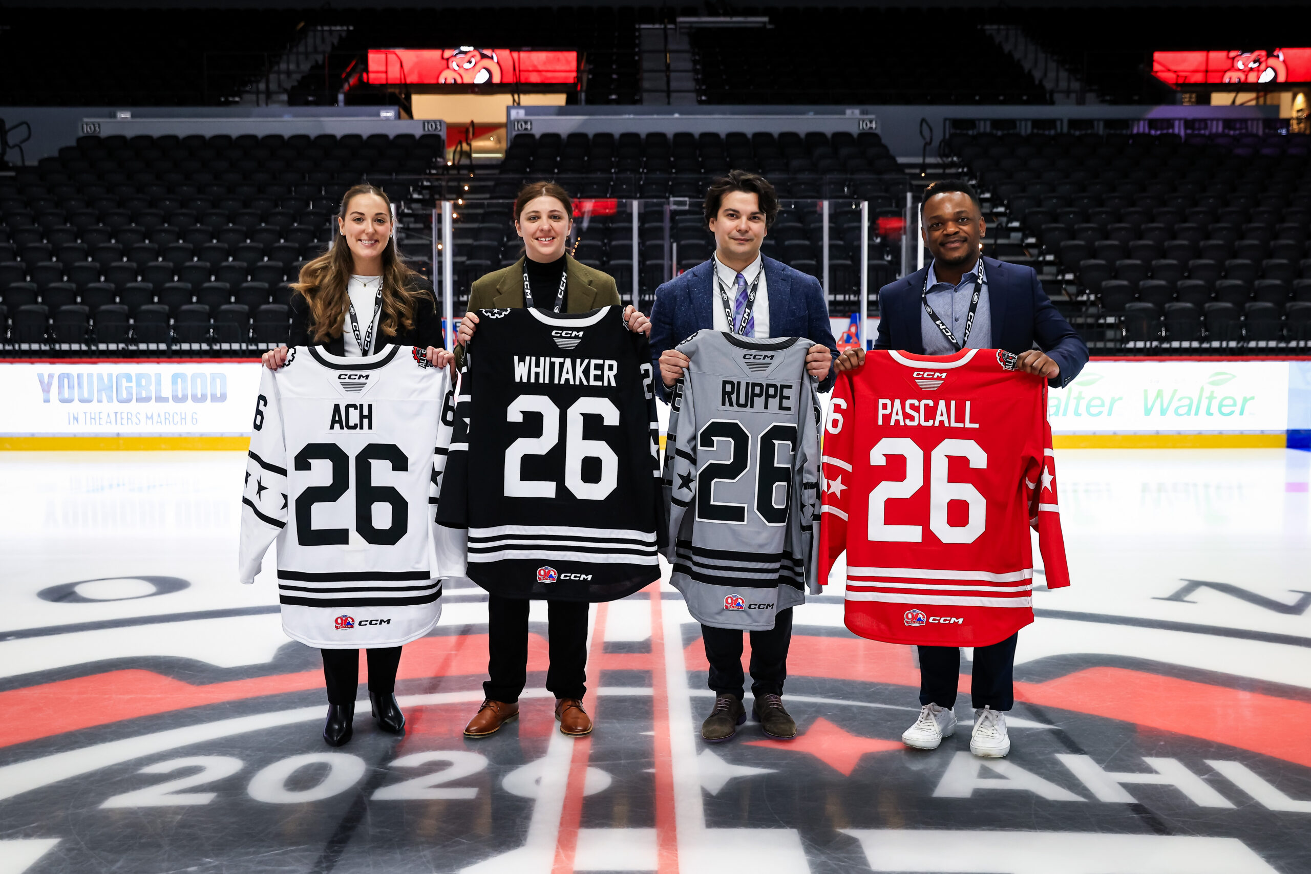 Photo: Emily Ach, Karli Whitaker, Dennis Ruppe and Chris Pascall at the 2026 AHL All-Star Classic